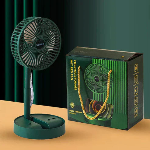 Folding Storage Net Red Fan – A compact, USB-powered fan with a built-in phone stand, perfect for desktop or bedside use.